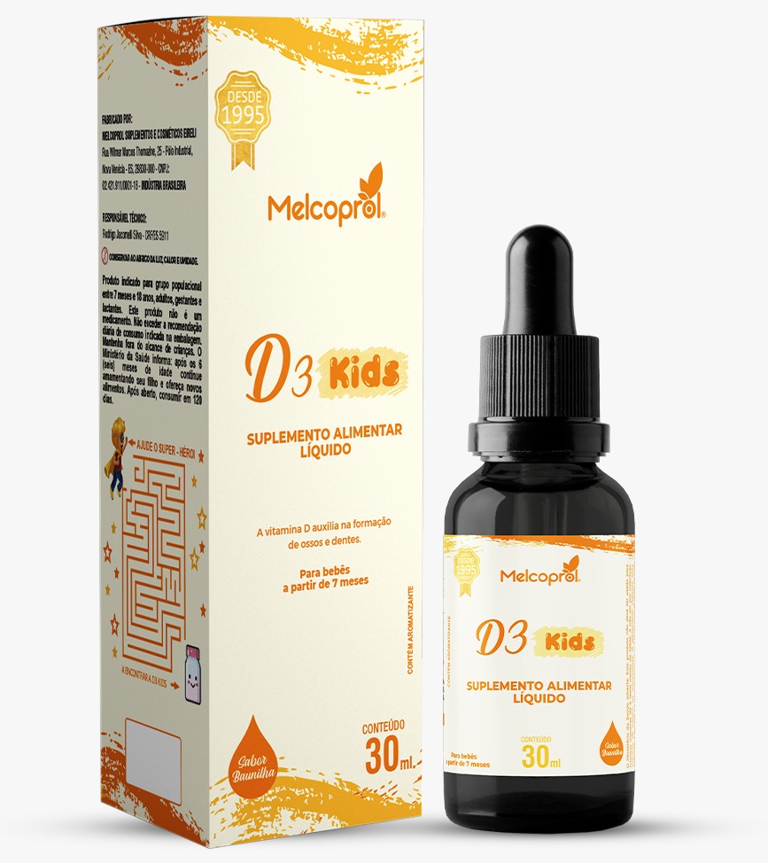 Ingerir 5 gotas (0,25ml) de Vitamina D Kids ao dia, preferencialmente com uma refeição, para garantir que seus filhos aproveitem todos os benefícios desse suplemento nutritivo.